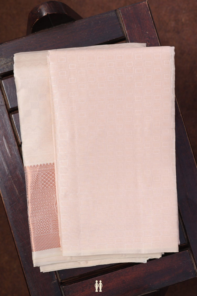 Indulge in luxury with our zari border pale pink silk dhoti with angavastram set. Crafted from the finest silk, this elegant set features intricate zari border detailing that adds a touch of sophistication. Perfect for formal occasions or special events, this set will elevate your style and make you feel truly exclusive.