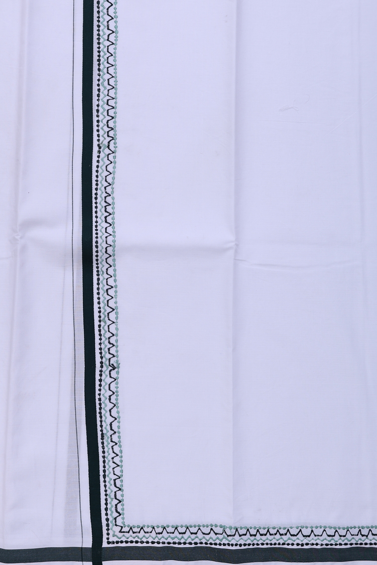 Contrast Border White Cotton Dhoti
