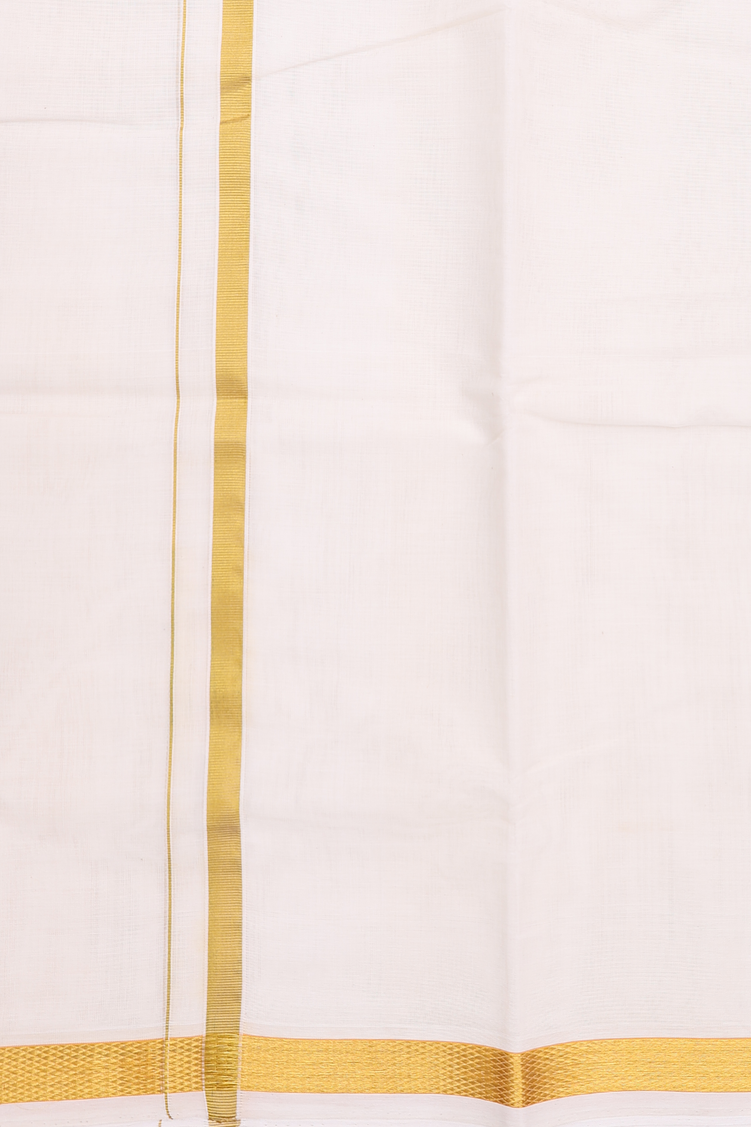 Elevate your traditional wardrobe with this refined white cotton dhoti, distinguished by its intricate zari border detailing. Crafted from premium cotton for breathability and comfort, this timeless piece seamlessly blends classic elegance with contemporary styling. The lustrous zari embellishment adds a touch of opulence, making it ideal for festive occasions, cultural celebrations, or refined everyday wear. Perfect for those who appreciate the artistry of traditional Indian textiles with a modern sensibility.