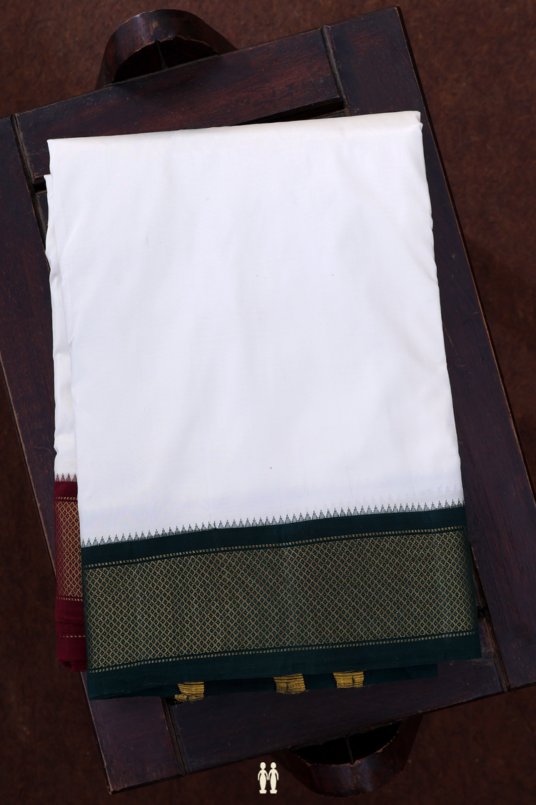 Indulge in luxury with our zari border white silk dhoti with angavastram set. Crafted with intricate zari border details, this set exudes sophistication and elegance. The soft silk material offers a comfortable fit, making you feel like royalty. Elevate your style with this premium dhoti and angavastram set.