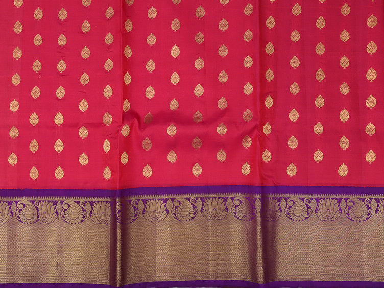 Zari Buttas Red Kanchipuram Silk Half Saree Material