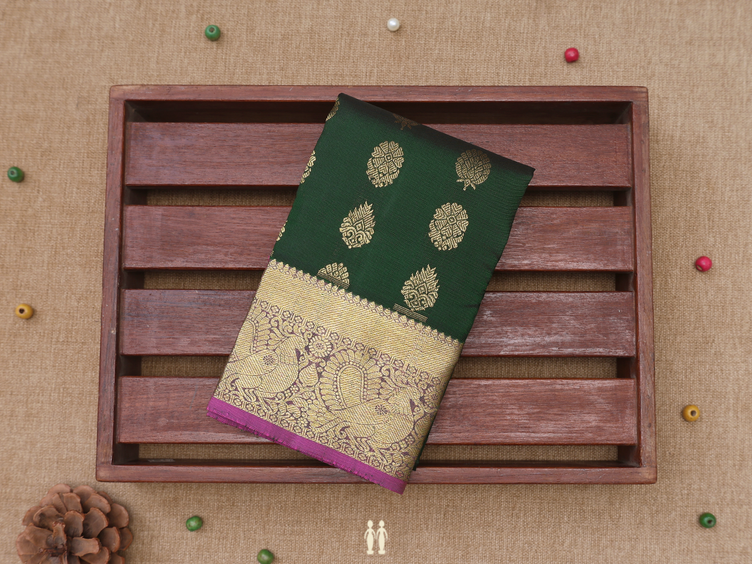 Elevate traditional elegance with the zari buttas forest green pavadai sattai material. Crafted in a rich forest green hue, it features intricate zari buttas that add a subtle shimmer, perfect for festive occasions or special celebrations. This fabric promises a graceful drape and a refined look, making it ideal for creating timeless pavadai sattai ensembles.
